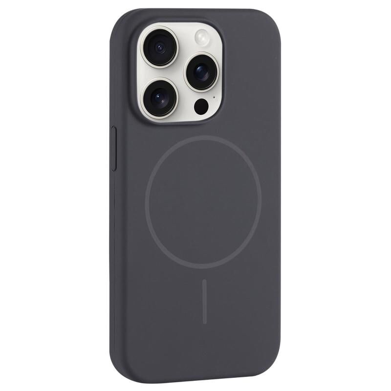 For iPhone 15 Pro Large Hole Camera MagSafe Liquid Silicone Full Coverage Phone Case(Carbon Gray Black)