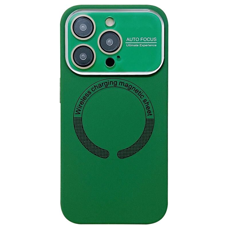 For iPhone 15 Pro Large Window Acrylic Glass Lens MagSafe Silicone Phone Case(Dark Green)
