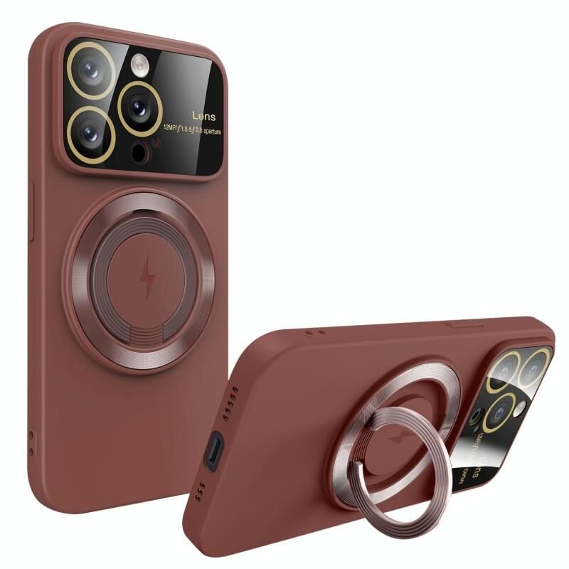 For iPhone 15 Pro Large Window MagSafe Magnetic Holder Phone Case(Claret Red)