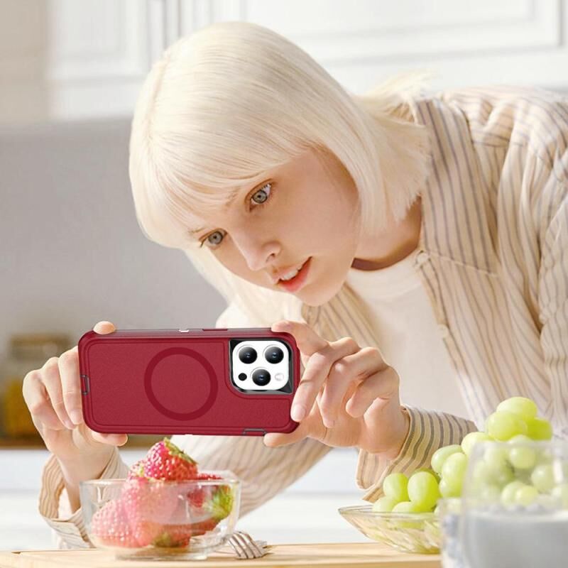 Θήκη τηλεφώνου για iPhone 15 Pro, αδιάβροχη, ανθεκτική, με MagSafe και μαγνητική σύνδεση (Κόκκινη)