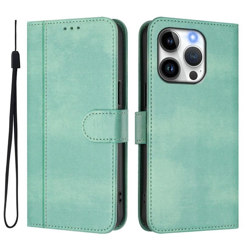 For iPhone 15 Pro Line Splicing Buckle Retro Leather Phone Case(Mint Green)