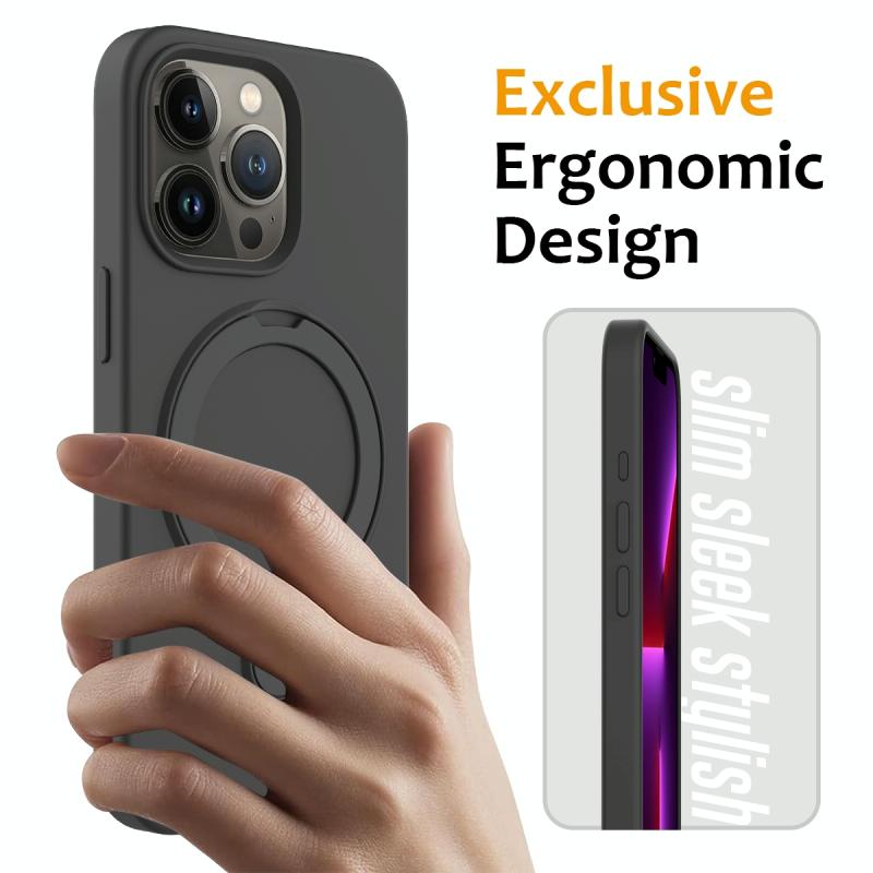 For iPhone 15 Pro Liquid Silicone MagSafe Magnetic Phone Case with Ring Holder(Carbon Black)