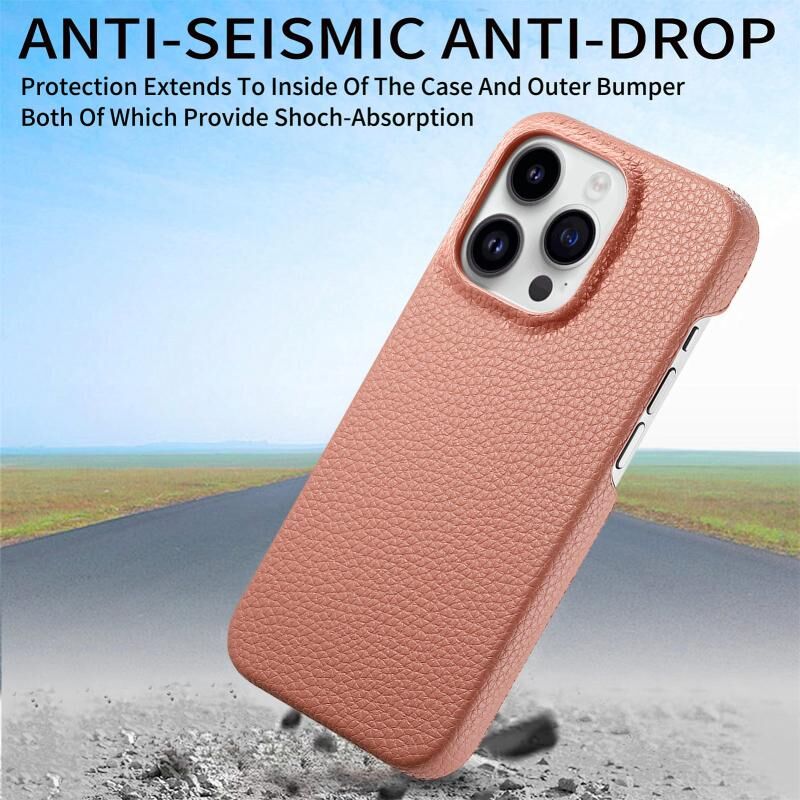 Θήκη τηλεφώνου για iPhone 15 Pro από δέρμα με επεξεργασία λαδιού Litchi, με λεπτές άκρες (Πράσινο Τσάι)