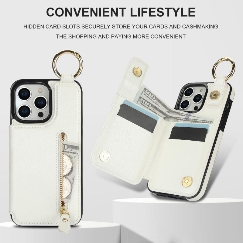 Για iPhone 15 Pro Litchi υφή φερμουάρ διπλή πόρπη κάρτα τσάντα υπόθεση τηλεφώνου (λευκό)