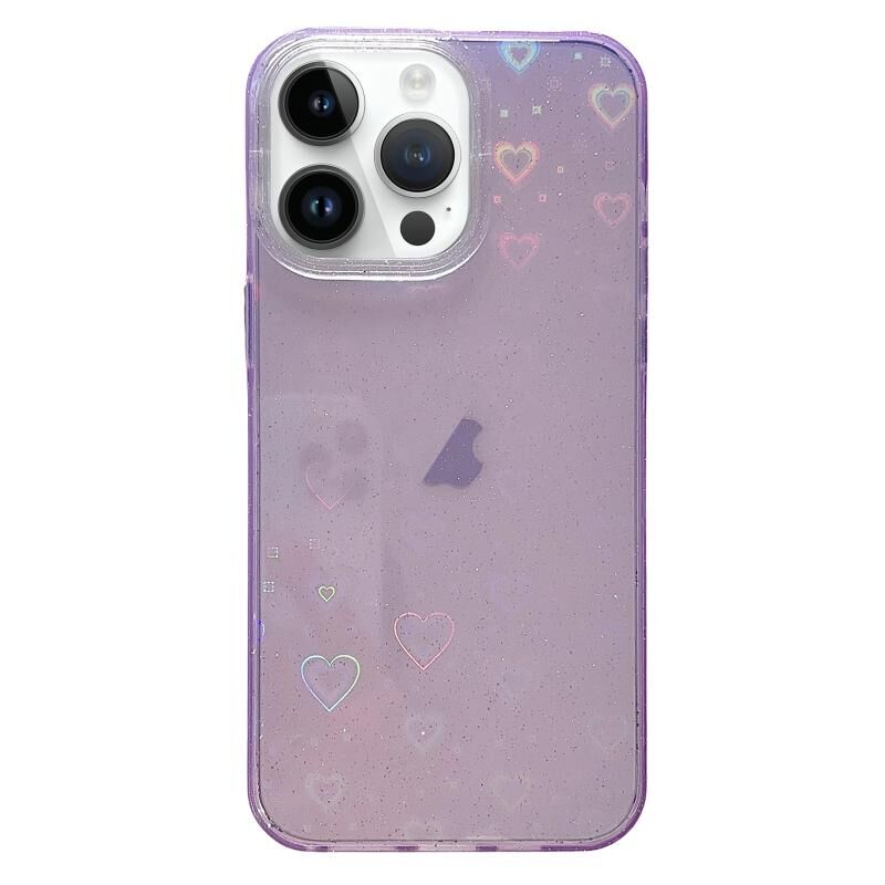 Θήκη κινητού τηλεφώνου για iPhone 15 Pro με διάφανο πλαίσιο φακού IMD ακρυλικού με σχέδιο καρδιάς (Ροζ)