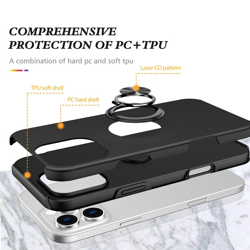 For iPhone 15 Pro Magnetic Ring Holder Phone Case(Black)