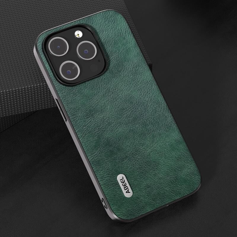 Θήκη τηλεφώνου για iPhone 15 Pro Max ABEEL Διχρωμίας Υφής Lichi PU (Πορτοκαλί)