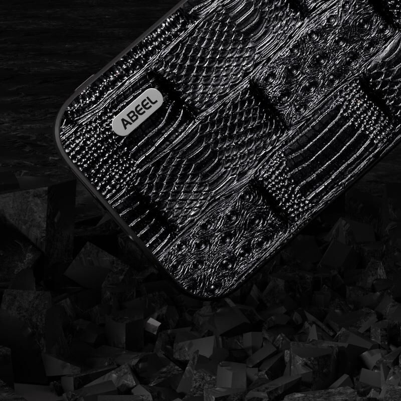 Θήκη τηλεφώνου από γνήσιο δέρμα ABEEL για iPhone 15 Pro Max με μοτίβο Mahjong και μαύρο περίγραμμα (Μαύρο)