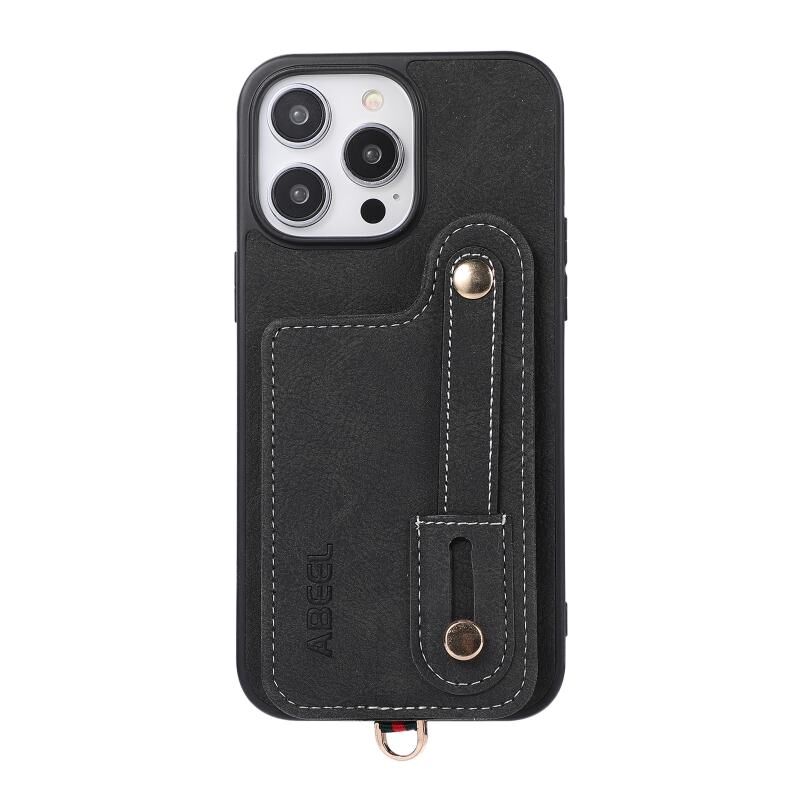 Θήκη τηλεφώνου για iPhone 15 Pro Max ABEEL με υφή δέρματος λυτσί, κάρτας από PU (Μπλε)