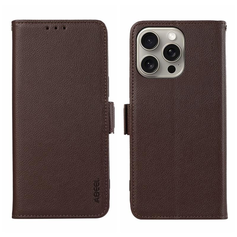 Θήκη τηλεφώνου με μαγνητικό κλείσιμο πλευρής ABEEL για iPhone 15 Pro Max, δερμάτινη με ανάγλυφο λitchi και προστασία RFID (Κόκκινη)