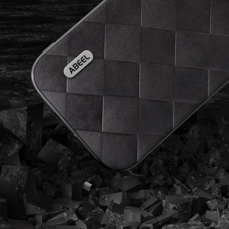 Θήκη τηλεφώνου για iPhone 15 Pro Max ABEEL, υφαντή καρό από PU δέρμα (Μαύρο)