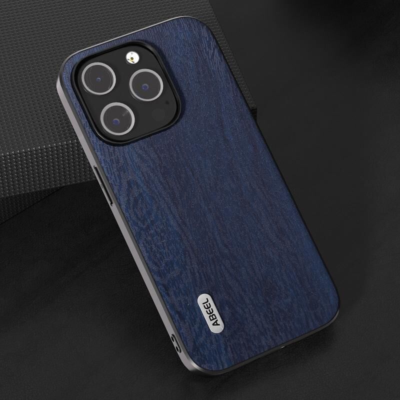 Θήκη τηλεφώνου για iPhone 15 Pro Max ABEEL με υφή ξύλου από PU (Πράσινο)