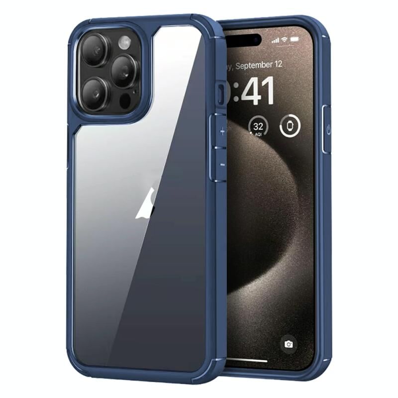 Θήκη κινητού τηλεφώνου για iPhone 15 Pro Max, Ακρυλικό + TPU, Διαφανής, Αντικραδασμική (Γκρι)