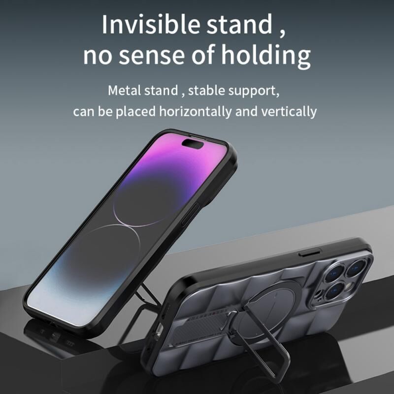 Θήκη κινητού τηλεφώνου για iPhone 15 Pro Max με αερόσακο, κατασκευασμένη από TPU + PC, ανθεκτική σε κρούσεις με βάση στήριξης (Γκρι)