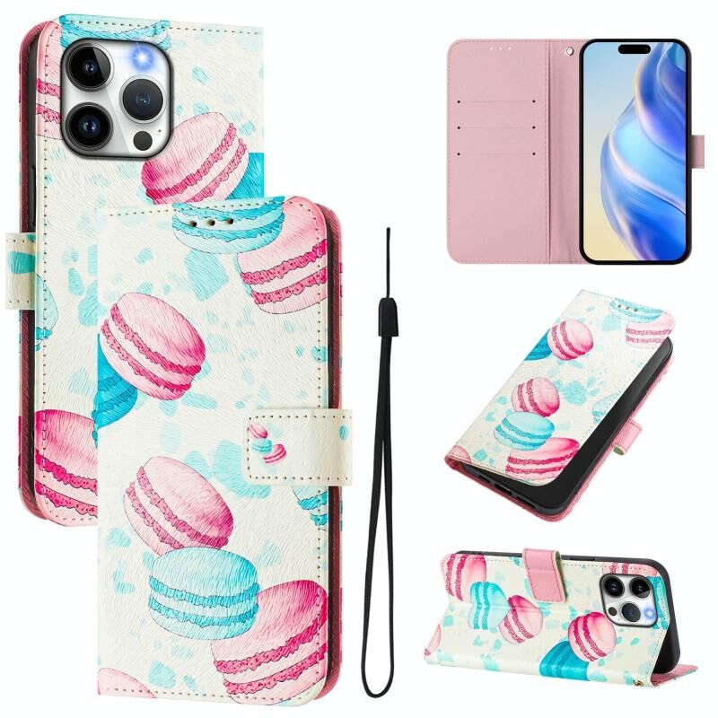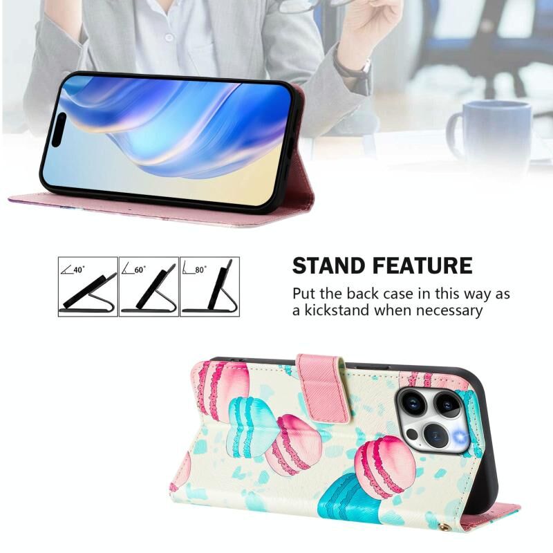 Θήκη τηλεφώνου από δέρμα με σχέδιο ζωγραφικής και χρώματα για iPhone 15 Pro Max (Τούρτα)