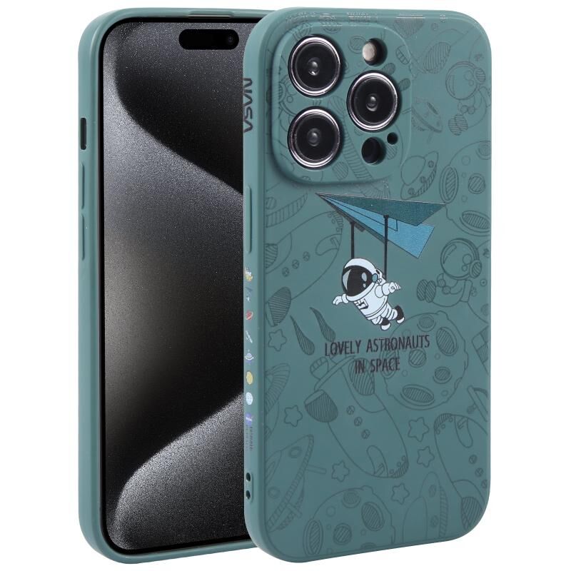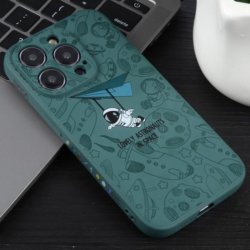 Θήκη τηλεφώνου για iPhone 15 Pro Max, σιλικόνης, με ευθύγραμμο περίγραμμα και σχέδιο αστροναύτη (Αστροναύτης Άρη - Μαύρο).