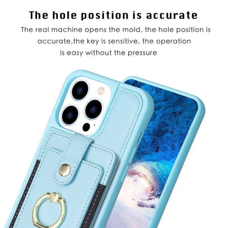 For iPhone 15 Pro Max BF27 Metal Ring Card Bag Holder Phone Case(Blue)