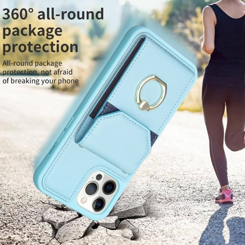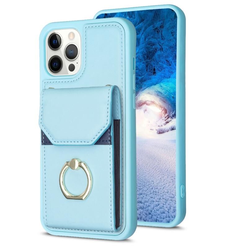 Θήκη τηλεφώνου για iPhone 15 Pro Max BF29 με κάρτες, δαχτυλίδι και λαβή (Μπλε)