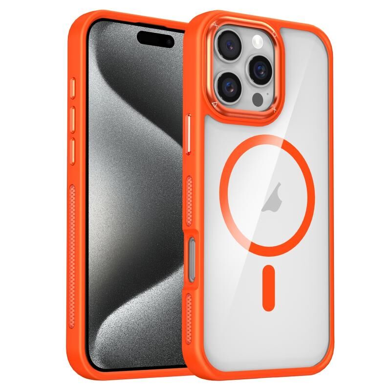 Θήκη τηλεφώνου MagSafe Μαγνητική Διαφανής με Αίσθηση Αναπνεύσιμου Δέρματος για iPhone 15 Pro Max (Πορτοκαλί)