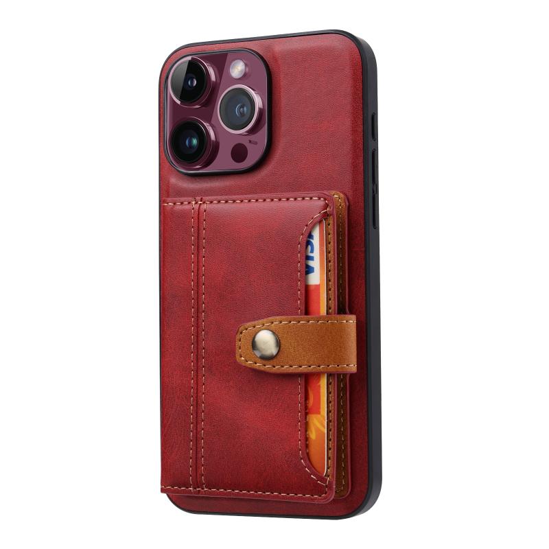 For iPhone 15 Pro Max Calfskin Card Slot TPU Hybrid PU Phone Case(Red)