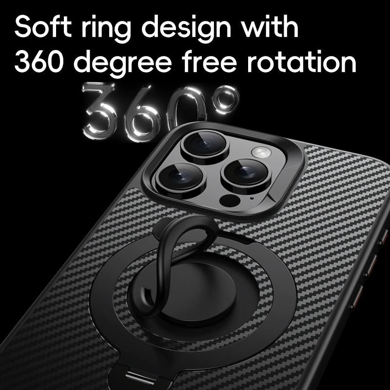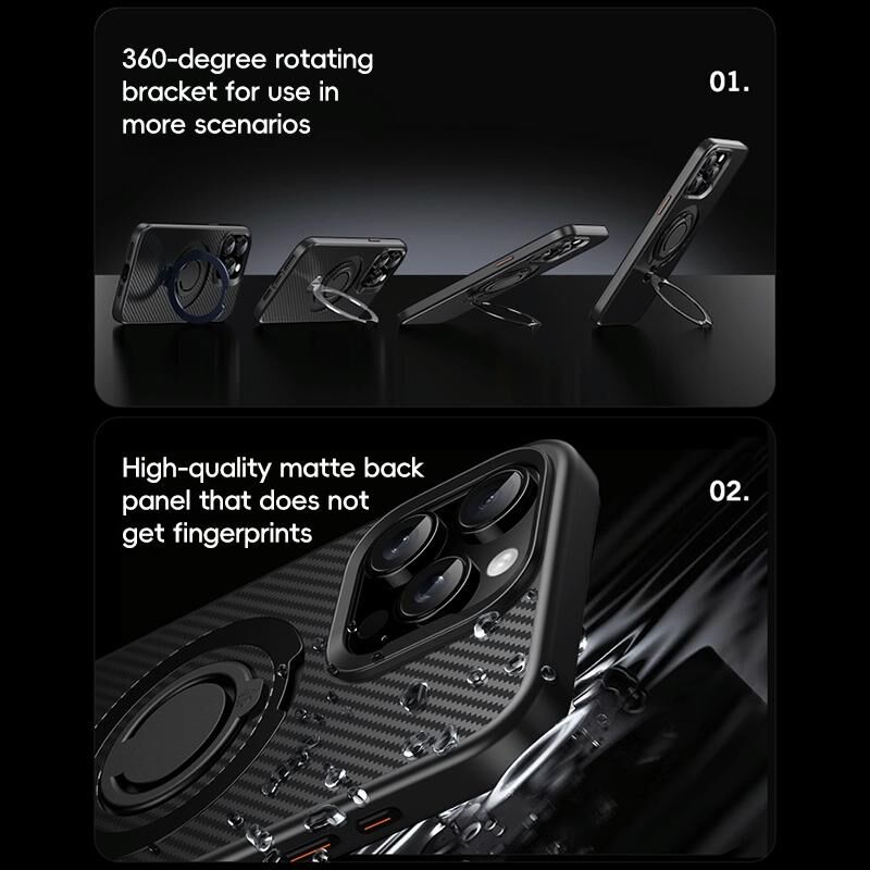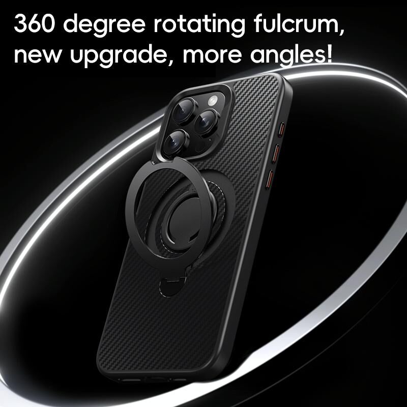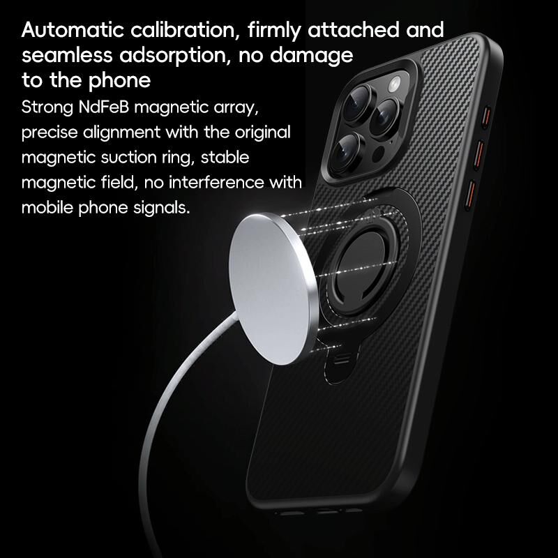 Θήκη τηλεφώνου MagSafe από ανθρακονήματα για iPhone 15 Pro Max με περιστρεφόμενη βάση 360 μοιρών (Μαύρο Χρυσό)