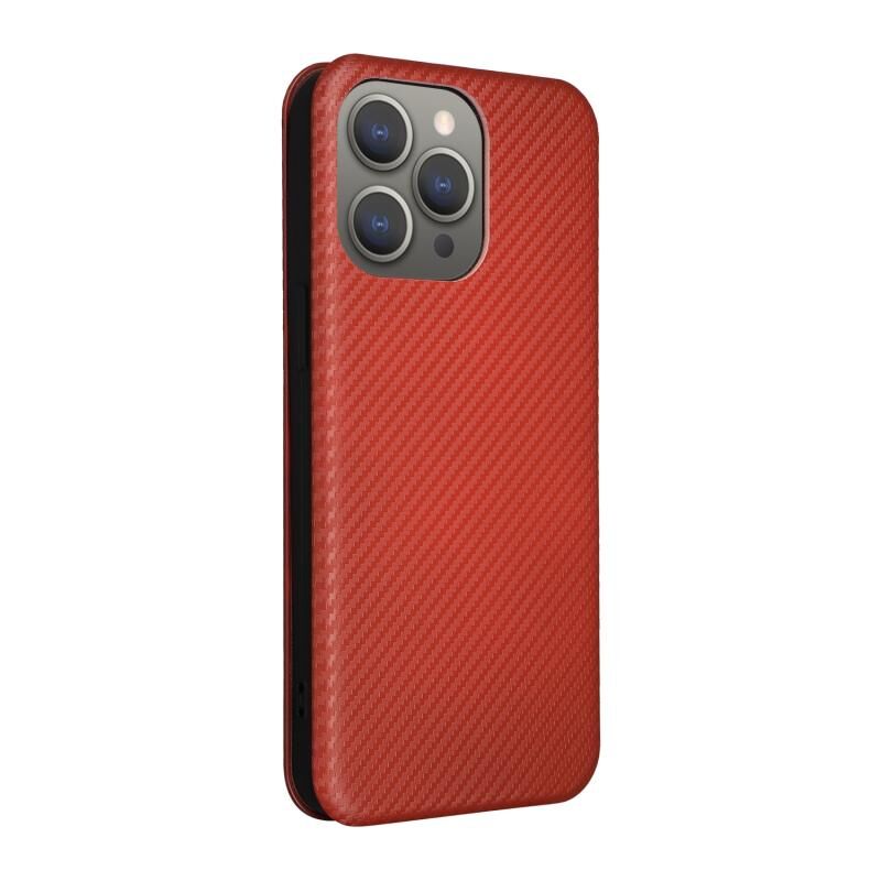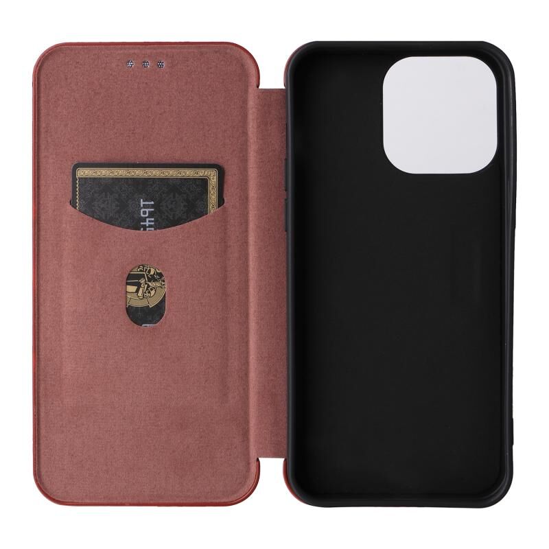 For iPhone 15 Pro Max Carbon Fiber Texture Flip Leather Phone Case(Brown)