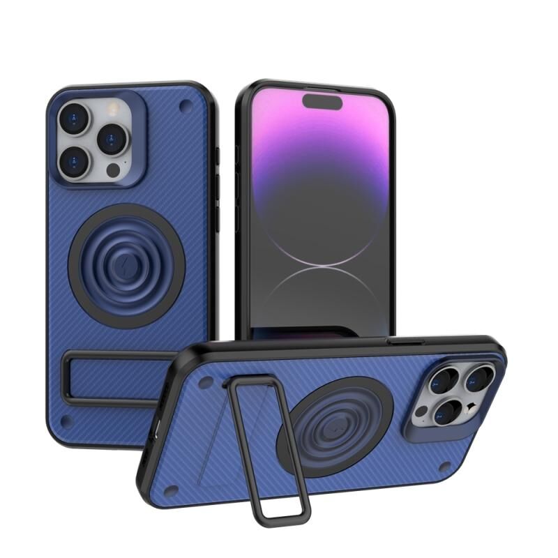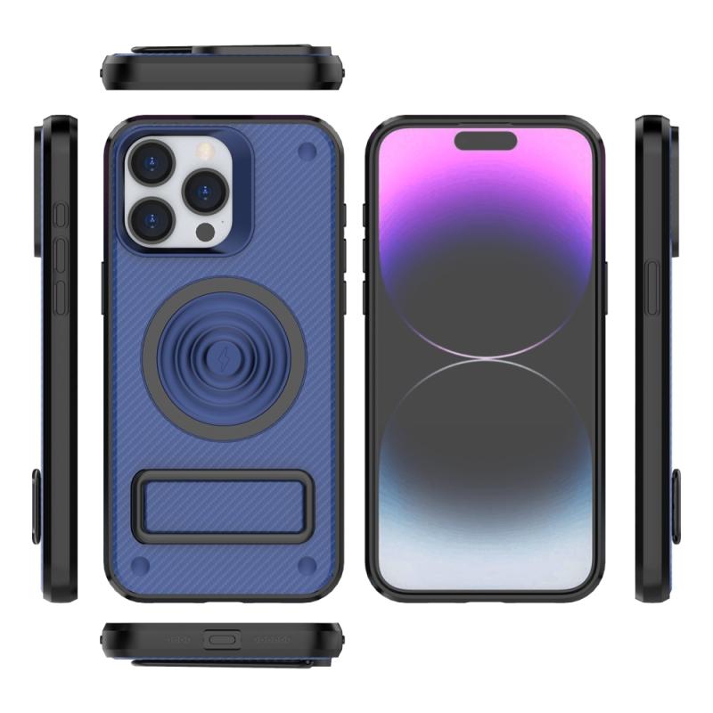 For iPhone 15 Pro Max Carbon Fiber Texture PC + TPU Phone Case with Metal Holder(Blue)