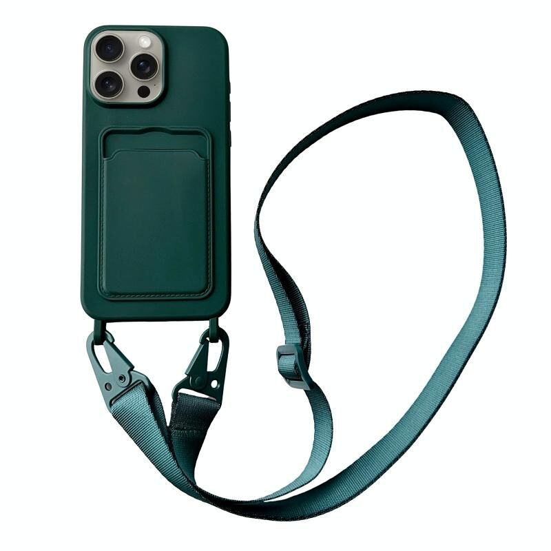 Θήκη για iPhone 15 Pro Max με υποδοχή κάρτας, υγρή σιλικόνη με κορδόνι (Μαύρο)