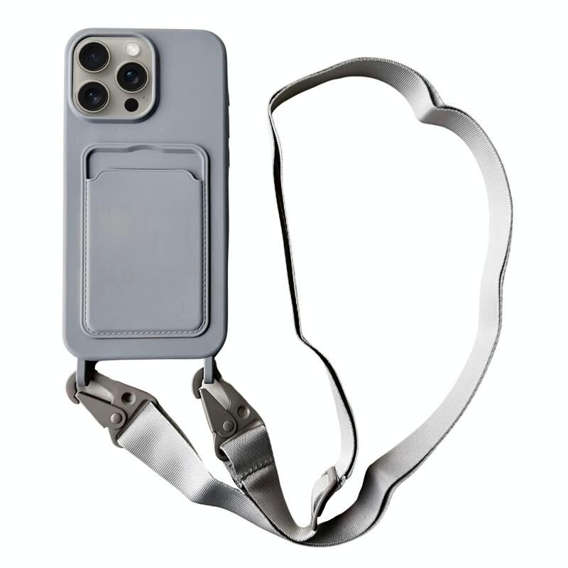 Θήκη για iPhone 15 Pro Max με υποδοχή κάρτας, υγρή σιλικόνη με κορδόνι (Μαύρο)