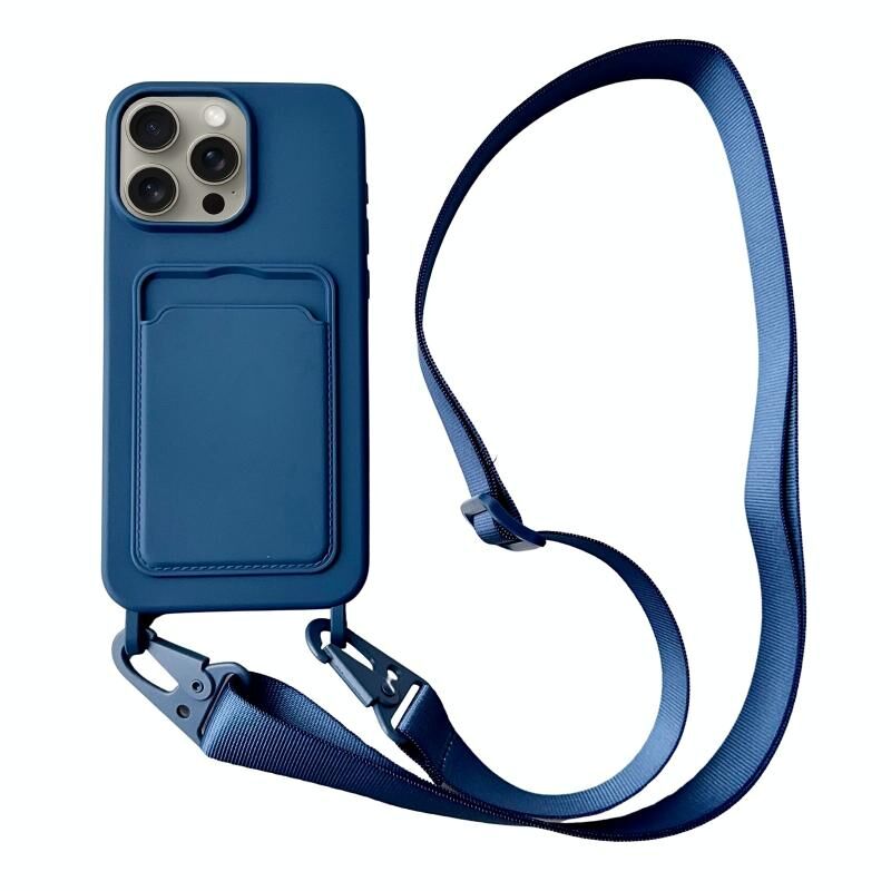 Θήκη για iPhone 15 Pro Max με υποδοχή κάρτας, υγρή σιλικόνη με κορδόνι (Μαύρο)
