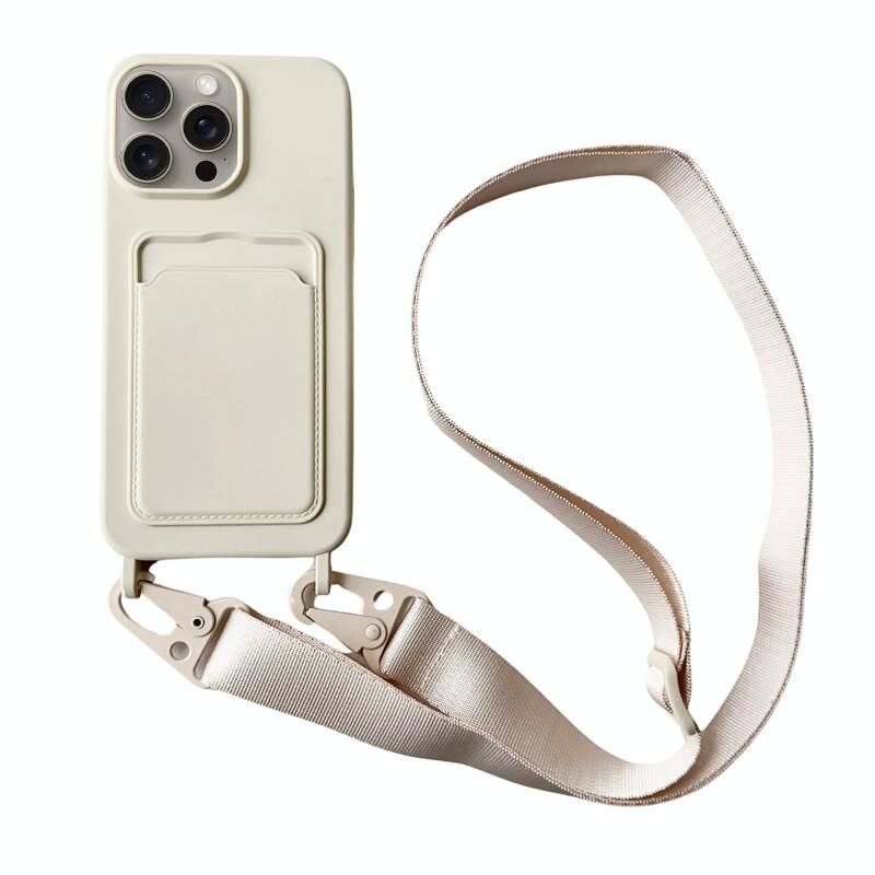 Θήκη για iPhone 15 Pro Max με υποδοχή κάρτας, υγρή σιλικόνη με κορδόνι (Μαύρο)