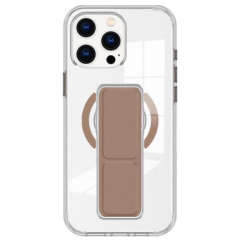 For iPhone 15 Pro Max Clear Wristband Holder MagSafe Phone Case(Brown)