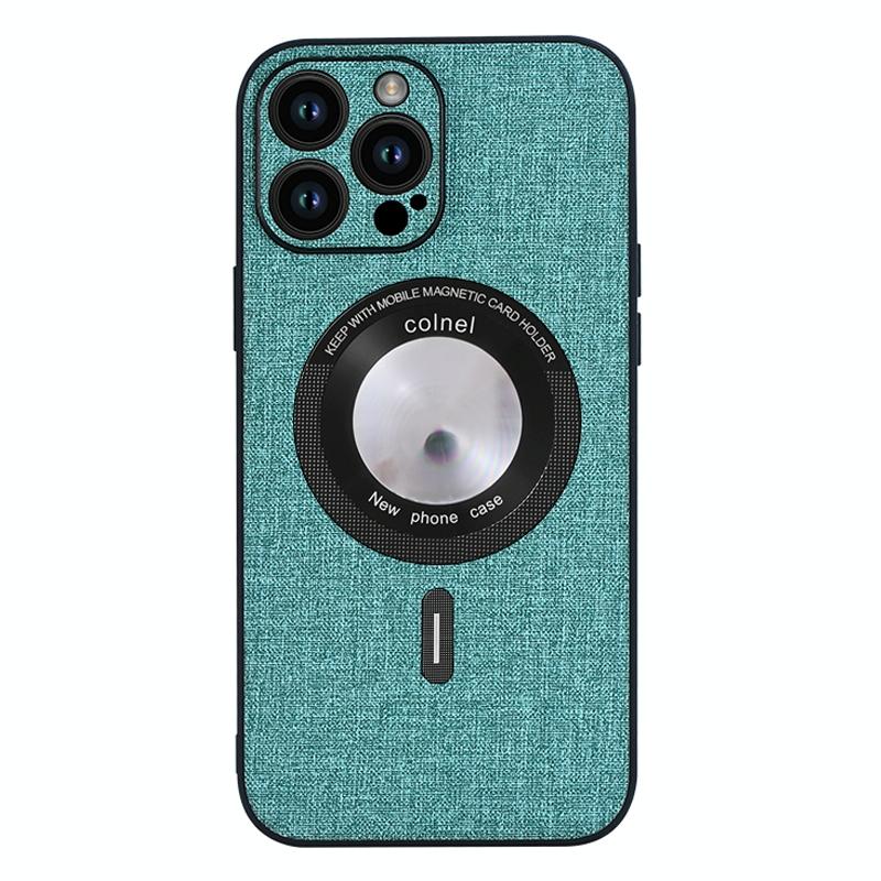 For iPhone 15 Pro Max Cloth Texture MagSafe Magnetic PU Phone Case(Light Green)