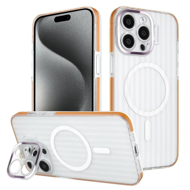 Θήκη τηλεφώνου MagSafe Μαγνητική για iPhone 15 Pro Max με χρωματική άκρη και βάση φακού (Πορτοκαλί)