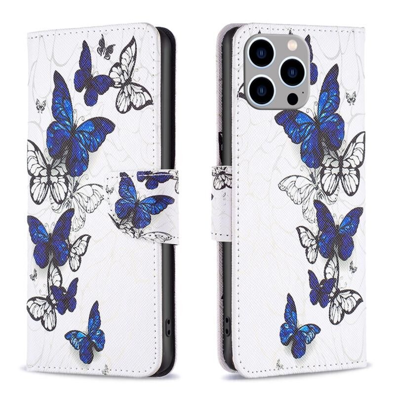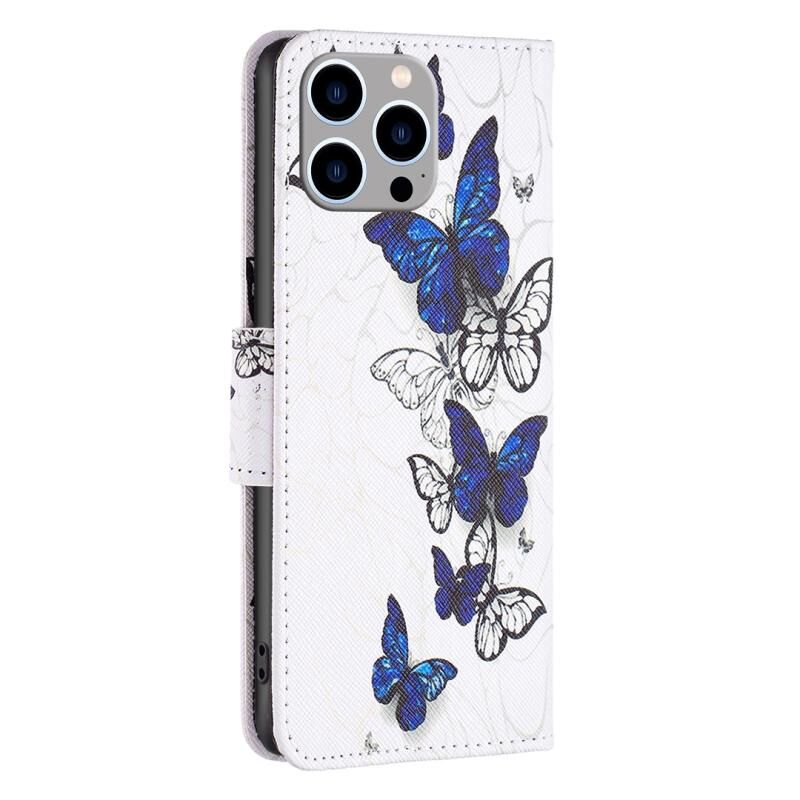 Θήκη τηλεφώνου από δέρμα με σχέδιο πολύχρωμης ζωγραφικής και πτυσσόμενο μηχανισμό για iPhone 15 Pro Max (Πεταλούδες)