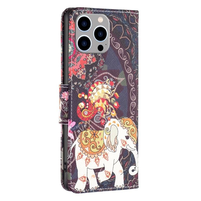 Θήκη τηλεφώνου από δέρμα με σχέδιο flip και πολύχρωμα σχέδια για iPhone 15 Pro Max (Λουλούδια Ελέφαντας)