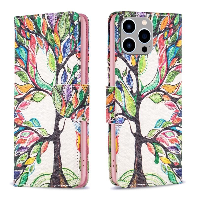 Θήκη τηλεφώνου από δέρμα με έγχρωμο σχέδιο (Δέντρο της Ζωής) για iPhone 15 Pro Max