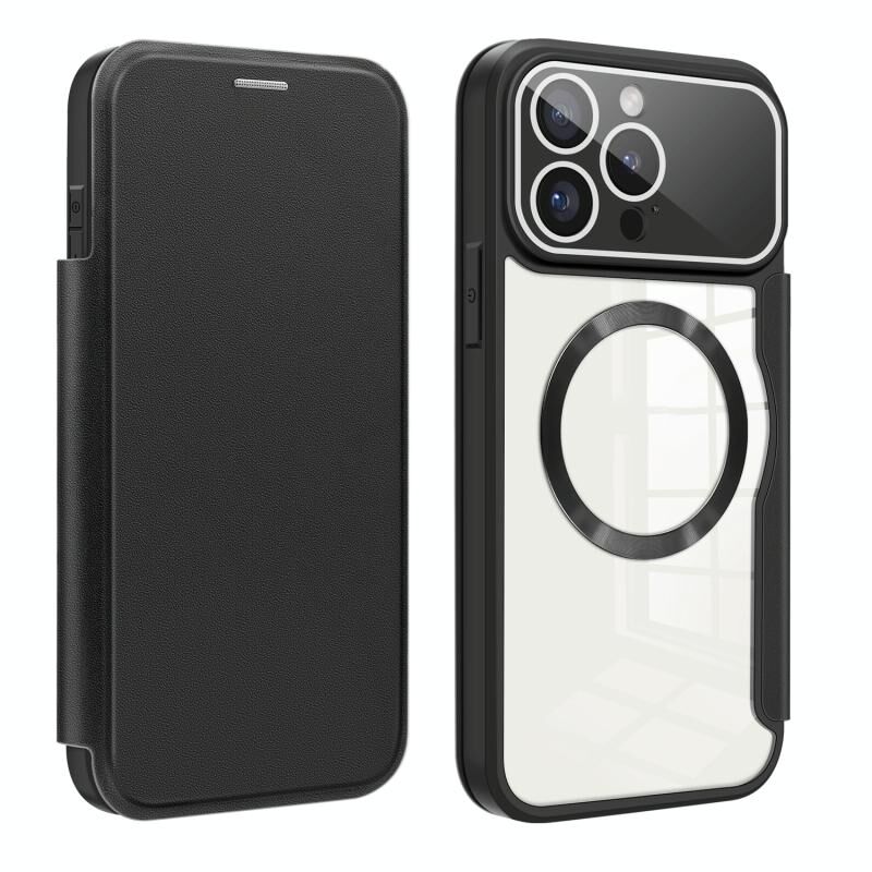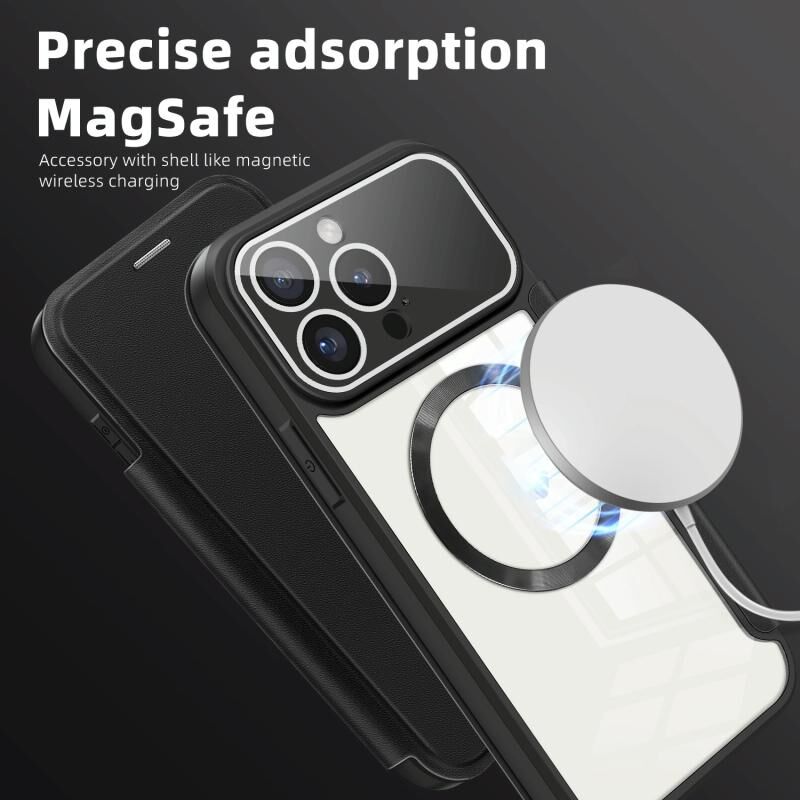 Θήκη τηλεφώνου δερμάτινη με μαγνητική προστασία MagSafe, αντι-κλοπής RFID, σε χρώμα μπλε για iPhone 15 Pro Max. (Μαύρο)