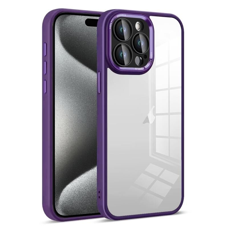 For iPhone 15 Pro Max Colorful Armor Lens Film Transparent Phone Case(Purple)