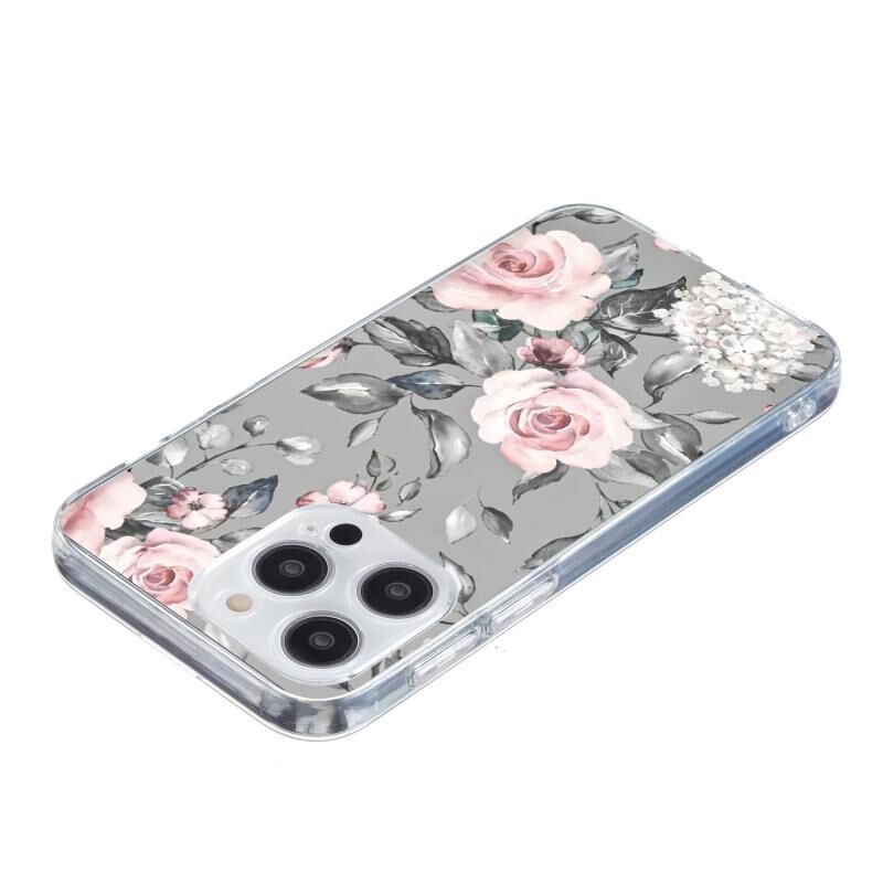 For iPhone 15 Pro Max Colorful Painting Pattern TPU Phone Case(Flowers On Grey)