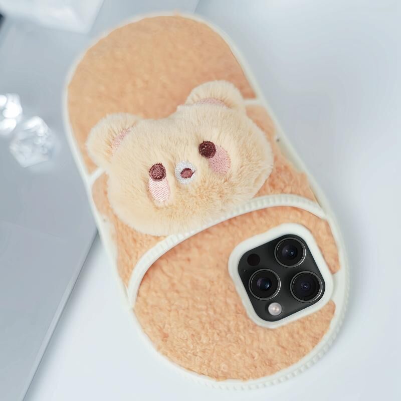 Θήκη κινητού τηλεφώνου TPU για iPhone 15 Pro Max με σχέδιο βελούδινης κούκλας και παντόφλας (Γκρίζλι Αρκούδα)