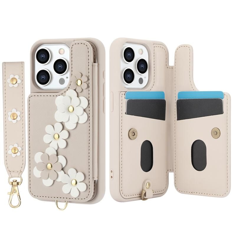 Θήκη τηλεφώνου από δέρμα με σχέδιο λουλουδιών για iPhone 15 Pro Max, τύπου crossbody (Λευκό)