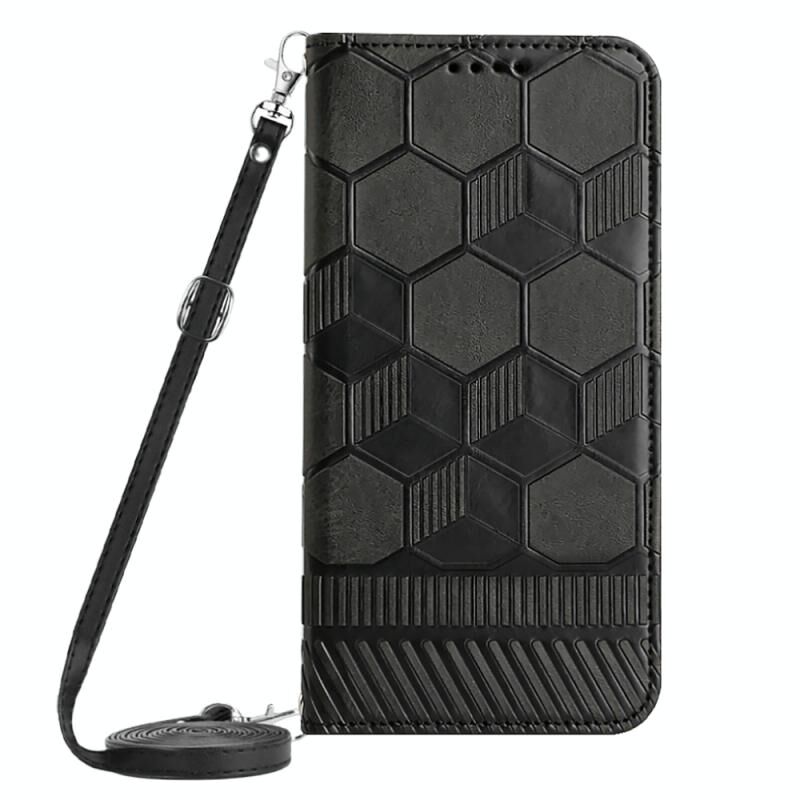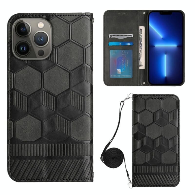 Θήκη τηλεφώνου μαγνητική από PU με υφή ποδοσφαίρου και λουρί για iPhone 15 Pro Max (Κόκκινη)