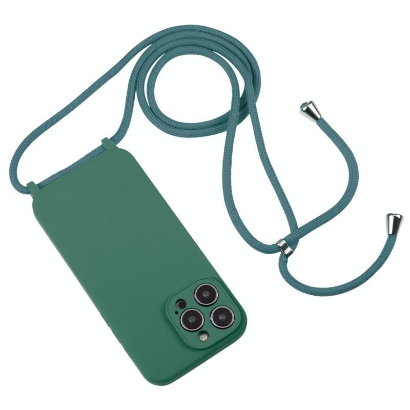 Θήκη για iPhone 15 Pro Max από υγρή σιλικόνη με λουρί Crossbody (Κόκκινο Ρόδι)