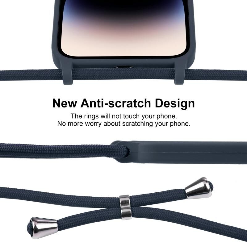 Θήκη για iPhone 15 Pro Max από υγρή σιλικόνη με λουρί Crossbody (Μπλε της νύχτας)