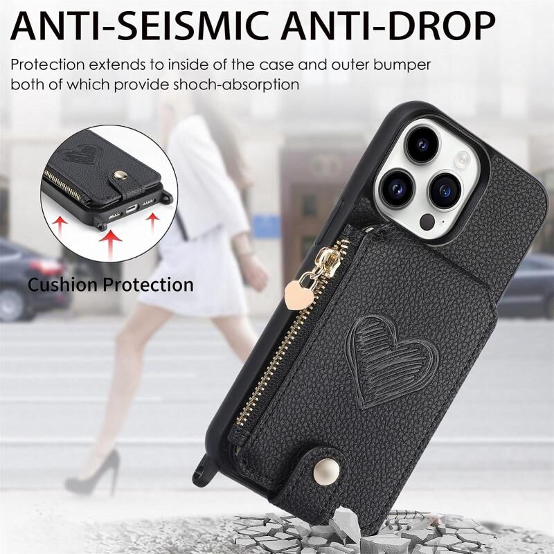 Θήκη κινητού για iPhone 15 Pro Max, διαγώνια, με σχέδιο καρδιάς, φερμουάρ και δέρμα (Λευκό)