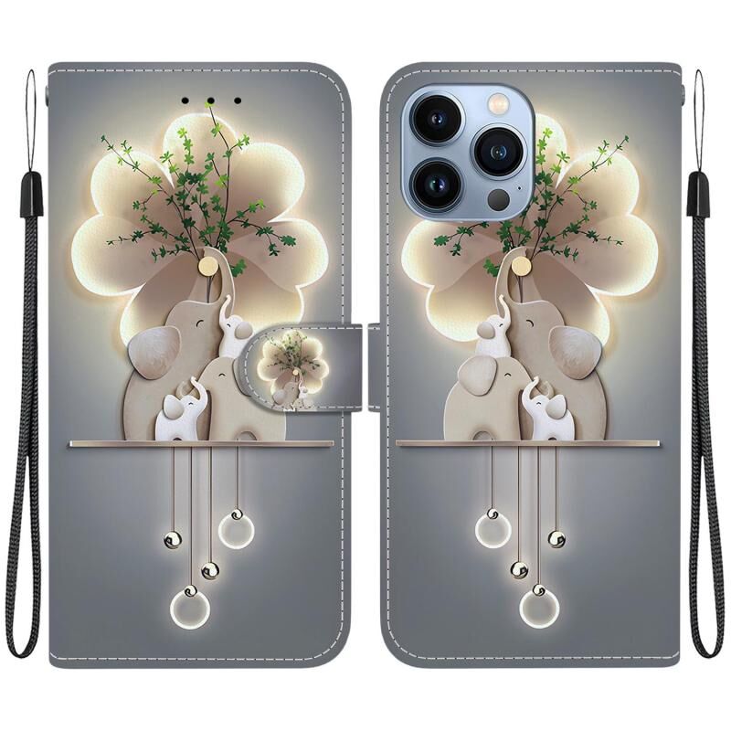 Θήκη τηλεφώνου από δέρμα με πολύχρωμη σχεδίαση κρυστάλλινης υφής για iPhone 15 Pro Max (Ελέφαντες)