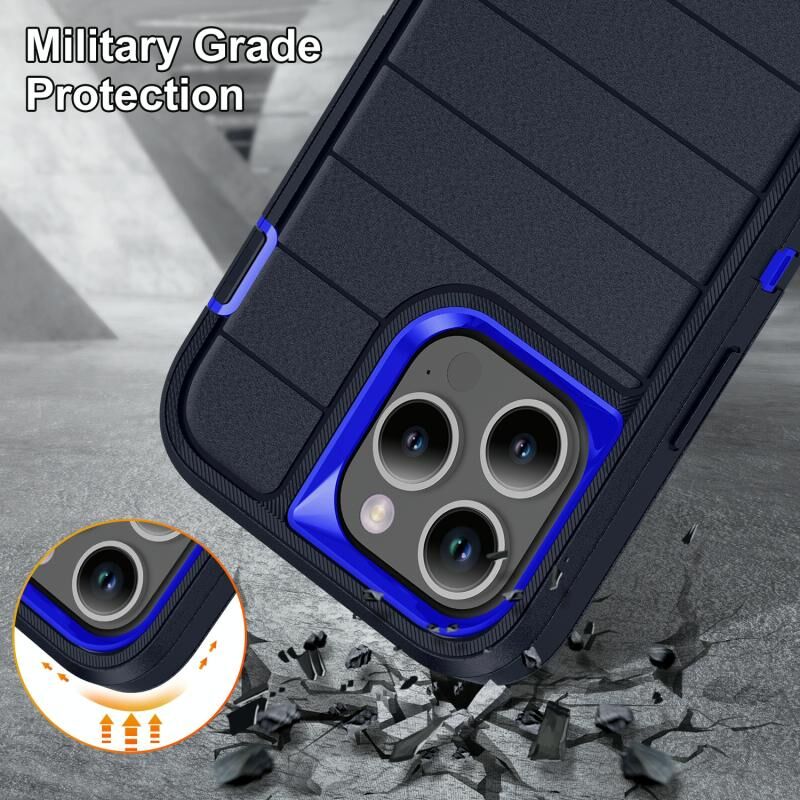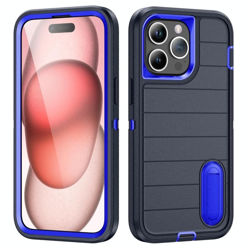Θήκη κινητού τηλεφώνου για iPhone 15 Pro Max Defender Gen2, ανθεκτική από πολυανθρακικό + σιλικόνη με βάση στήριξης (Μαύρο)