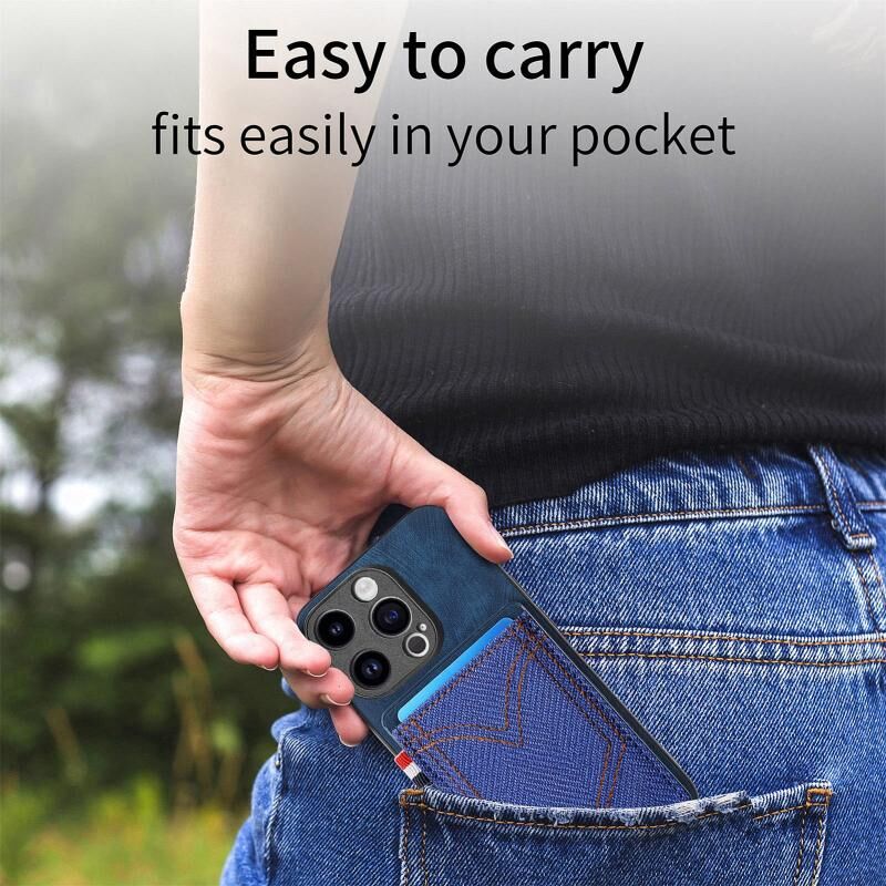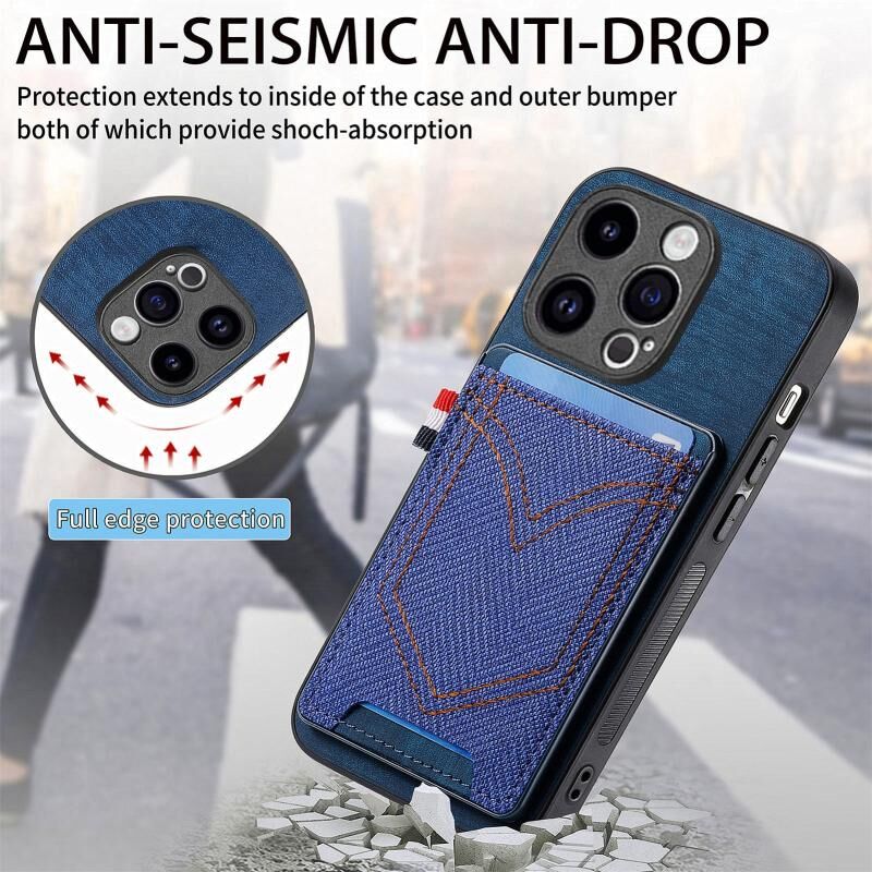Θήκη τηλεφώνου από δέρμα με υφή denim για iPhone 15 Pro Max με θήκη για κάρτες (Μαύρο)