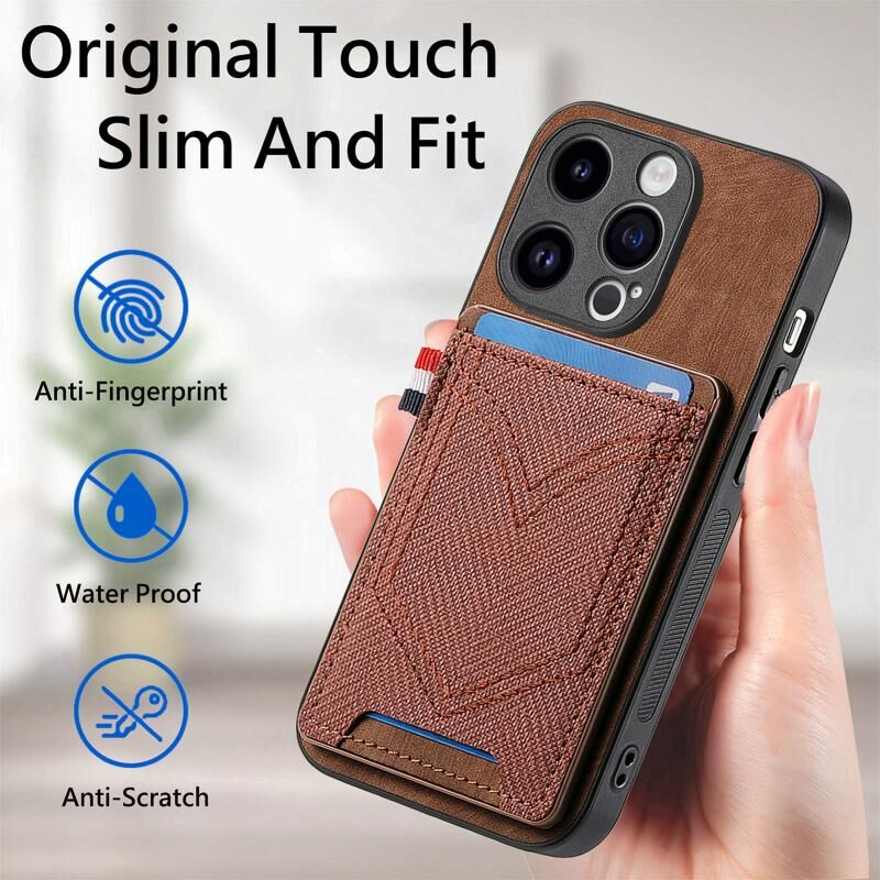 Θήκη τηλεφώνου από δέρμα με υφή denim για iPhone 15 Pro Max με θήκη για κάρτες (Μαύρο)